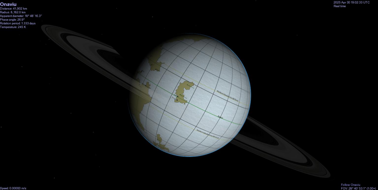 NOTE: Celestia is great for a visual creation of a stellar system with your planet. It takes time to learn the definition coding of each object, but you can build your own stellar system. I have for Onaviu. Alas, it is too huge to upload. Even zipped it is over 100GB. I created HUGE texture files for each object in the Ëosalus system of which Etherlond belongs. Now I have to completely rewrite what I have written for story after discovering that Great Eclipse dead on the date I had planned on starting the story. Gotten lazy about that, but am encoding more scientific data. And I have to go back and completely remake the Calendarial System because, utilizing Celestia’s timespeeding, I have since found a 7-year, 13-year, and 19-year significant cyclic events. Things I never calculated for, but a program helped me see them. AAAAAAArghh... And players wonder why GMs get headaches so often.
